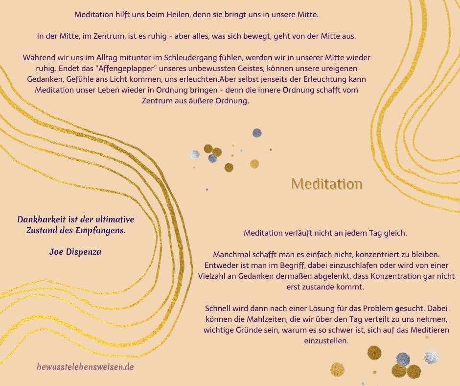 - Meditiere – bringe dein Gehirn in einen Theta-Zustand und lasse Bilder entstehen, wer du sein möchtest, wie du lebst. Die beste Zeit dafür ist morgens oder abends, zwischen Wachen und Schlafen.
